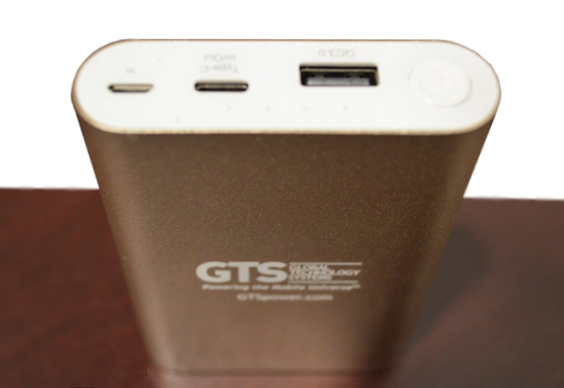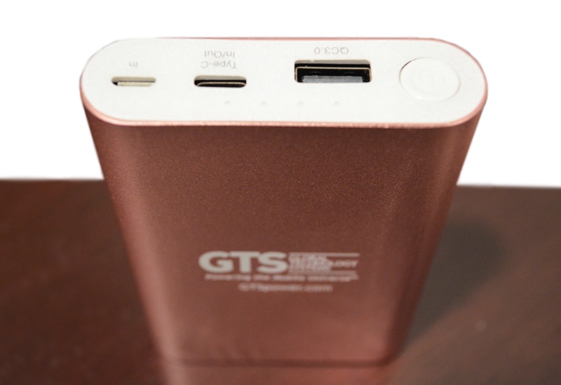 - Charge your devices on the go with GTS PowerBank 10K Li-Ion Rechargeable Battery (Model # E-20Q)
